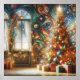 Poster A Retro Style Christmas Tree With Presents on Wall
