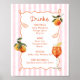 Introducing our enchanting 'A Spritz Older' birthday drinks menu, designed to make your special day even more memorable. This sign features an orange hand-drawn doodle frame on a soft pink striped background. Adorning the frame are watercolor oranges and a spritz glass, as well as whimsical doodle orange slices, adding a touch of playful elegance to the design. The whimsical handwritten font beautifully complements the artistic frame, creating a cohesive and charming look that will captivate your guests from the moment they see it.