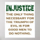 A injustiça ocorre em todo o mundo. Deixe o mundo saber como você se sente com esta citação temerária da injustiça: A única coisa necessária para o triunfo da mau é que os homens bons não façam nada.