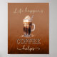 Bebida de café com creme chicoteado, nos lembra que 'A vida acontece', mas 'COFFEE ajuda'. Perfeito para o espaço de qualquer amante de café, esta poster deve trazer calor e sorrisos.