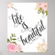 A vida é um belo impressão floral cor-de-rosa inspirador