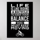 Poster motivacional. A vida é como andar de bicicleta para manter seu equilíbrio, você deve continuar se movendo. Decoração do lar para uma boa inspiração. Impressão design.
