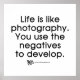 Este na moda e design gráfico divertido com a frase "A vida é como fotografia. Você usa os negativos para se desenvolver" é perfeito para o fotógrafo que busca algo único para seu guarda-roupa.