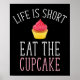 A Vida É Curta - Coma O Cupcake. Esta curiosa citação inspiracional é um presente de amante de cupcake para homens, mulheres, garotos, meninas, adolescentes e crianças que adoram comer cupcakes e doces. Vista isso a uma festa de aniversário e faça seus amigos rirem! Você adora assar e comer bolos de xícara com glacé de borboleta, ou bolos de fada? Você adora cozinhar doces sobremesas na cozinha? Você é padeiro? Então esta design é para você! Apresenta um gráfico de um cupcake de fosco rosa.