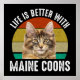 A Vida É Melhor Com Maine Coons. Este cúmplice engraçado e fofo do gato Maine Coon é um presente perfeito para uma mãe de gato ou um pai de gato que é dono do gatinho Maine Coon. Excelente para homens, mulheres, rapazes, raparigas, adolescentes e crianças que adoram gatos Maine Coon. Maine Coons são frequentemente chamados de Gentle Giants por causa do seu grande tamanho e gentil caráter. Se você é o dono orgulhoso de um gato Maine Coon, esta design é para você! Inclui um gráfico fofo de um rosto de gato Maine Coon colocado contra um pôr do sol retrô.