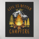 Um gráfico de acampamento que diz: A vida é melhor na fogueira para um amante de acampamento.
