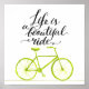 Citação inspiradora - a vida é uma bela viagem. Poster de caligrafia moderna manuscrita com bicicleta desenhada à mão verde. | Bigstock® - Todos os direitos reservados.