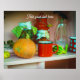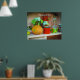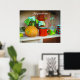 Poster com uma foto do jardim com uma abóbora de laranja ensolarada, uma lata de leite e uma caneca vermelha. Um encantador sotaque rústico à decoração da sua casa, presente de excelente para comida e amantes de jardinagem. Por favor, personalize com seu texto! Para mais modificações (estilo de fonte, cor de fonte, posição de texto), clique em "Editar design".