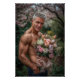 The perfect blend of strength and tenderness. His powerful arms cradle a bouquet of exquisite flowers, a testament to the beauty of love.