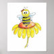 Esta é uma pintura mestiça original de uma abelha branca sobre uma flor amarela.