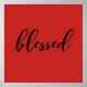 Esta poster tem uma base vermelha e diz abençoada em fonte preta. Adicione uma moldura e faça dela uma peça elegante.