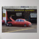 Imagem da capota vermelha Jaguar mk.2. aberta, servida na garagem