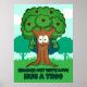 Cartaz "Abra-se com Amor e Abrace uma Árvore", apresentando uma cena inspirada na natureza de uma árvore engraçada e feliz com olhos grandes e bobos e um sorriso largo e amigável. O tronco da árvore é marrom e as folhas são verdes pontilhadas com maçãs vermelhas em forma de coração. Abaixo estão dois modelos de texto em uma fonte verde grossa e divertida com um traço preto. Um diz "Abra-se com Amor" e o outro "Abrace uma Árvore". Estes podem ser usados como estão ou você pode usar os modelos de texto para adicionar seu próprio texto. O fundo é uma cena simples da natureza com árvores, grama e nuvens. Ideal para amantes de árvores, amantes da natureza e para quem ama o meio ambiente.