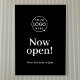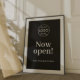 Um logotipo moderno de negócios negros abre tempos de poster com tipografia clássica em estilo minimalista. O modelo pode ser facilmente atualizado com o logotipo da sua empresa e o horário comercial.