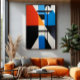 Formas geométricas puras e cores vibrantes se organizam em composições equilibradas, onde a precisão matemática converge com a liberdade de abstrato. Este trabalho celebra a complexa simplicidade da modernidade, transformando elementos básicos em uma linguagem visual impressionante.