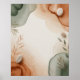 This modern abstract botanical design features flowing watercolor shapes in sage green, terracotta, soft peach, and creamy beige, accented by delicate leaf silhouettes and smooth pebbles. The balanced, organic composition radiates calm sophistication and natural harmony.