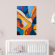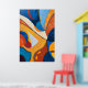 This vibrant abstract painting is a symphony of blues, oranges, and yellows with bold lines and dynamic shapes. The fluid curves and layered colors create a sense of movement and energy, evoking elements of nature or flowing water. Perfect for lovers of contemporary art who enjoy bold, colorful compositions that bring warmth and vitality to any space.