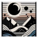Eine schöne und kreative abstrakt Darstellung einer Bergsee Landschaft bei Nacht, in Schwarz und Weiß gehalten mit einigen Blau Kontrast Farben.