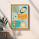 Poster Abstrato Aqua Laranja Meio século da Era Atômica