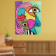 Este brilhante e colorido poster foi criado com a minha arte original de giz-giz abstrato com um design de cubismo com grandes olhos e lábios vermelhos em um design de bloco cor rosa, verde, azul, amarelo, púrpura com um toque de listras negras e brancas.