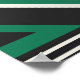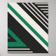 Este trabalho de arte de abstrato apresenta um design geométrico limpo e estruturado, dominado por cores verdes, pretas e brancas. A composição apresenta linhas e triângulos diagonais que se cruzam, criando um sentido de movimento e profundidade. Os elementos verdes contrastam nitidamente com o fundo preto e branco, fazer ousado e visualmente engajado, com uma estética minimalista mas moderna.