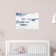 pintura de cor d'água do abstrato original poster impressão art em azul e branco ardente.