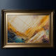 Pintura Orgânica Geométrica com Abstrato de Aquarela. Acentos de tinta Dourada azul de cinza A proporção de aspecto é 3:2. Ele foi projetado para ser impresso como 36"×24", 30"x20" ou 24"×16"
