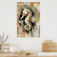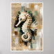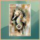 Um Creme e Cavalo Branco escorrega em um fundo de Abstrato. Páginas do Livro da Vintagem Castanho cercam o cavalo-marinho com uma Paleta de Cor do Tom Terrestre Abstrato. A Academia Oceânica inspira este Impressão Digital.