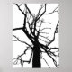 Este poster de arte fino apresenta um padrão de abstrato artístico, preto e branco do topo de uma tulipa no inverno com galhos nus na silhueta.