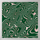 Mínimo e elegante traçados de onda de folha verde-floresta e rosa de folha escura e falso, que apresenta um conjunto de múltiplas linhas onduladas e círculos com traços irregulares de design brilhante rosa rosa-fluido, num fundo verde-floresta. Na moda abstrato.