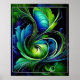 Poster abstrato de folha verde azul