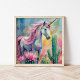 Uma pintura abstrato moderna, com um unicórnio cercado por cactos e suculentos de cor pastel. O unicórnio, pintado em linhas fluentes e cores vibrantes, se destaca contra os tons suaves de pinças escamosas, verdes de menta e azuis claros nas plantas do deserto. Essa composição lúdica e imaginativa combina a aura mística do unicórnio com a beleza orgânica da flora desértica, criando uma cena mágica e sonhadora com um toque artístico contemporâneo.