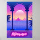 Um conjunto de poster de paisagem abstrato no estilo retrofuturismo Cores de neon retrorreflectoras e ciberpunk, colunas gregas e uma estátua