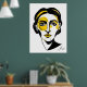 Este retrato de abstrato utiliza uma paleta de cores limitadas de preto e ouro para retratar o rosto da mulher. O uso de linhas e formas ousadas pelo artista transmite forte emoção e individualidade. A peça é uma interpretação moderna do retrato, priorizando a forma e a expressão sobre o fotorealismo.