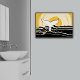 Abstrato Sunsrise O impressão Amarelo e Negro é parte do decor da parede do banheiro. Para obter assistência para personalização de cores, entre em contato conosco em info@KBMD3signs.com.
