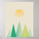 Montanhas geométricas verdes minimalistas e pôr do sol amarelo para esta design moderna semiabstrato.
