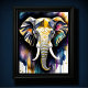 Abstrato Watercolor Painting of a Elephant on a black background. A proporção largura/altura é 5:4. Ele foi projetado para ser impresso como 5"×4", 10"x8", 20"×16", 30"x24"