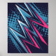 Poster Abstrato Zigzag Design em ciano e cor-de-rosa bril