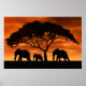 Elefante andando sob uma Acacia Sunset. renderização 3d. feita com bryce 7 Pro.