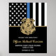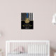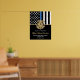 Este design apresenta uma bandeira da polícia com listras pretas e brancas, e uma fina faixa azul de linha também. Um excelente de dizer parabéns ao novo formando da academia de polícia. Personalize com o nome do polícia graduado em ouro. Celebre este marco em estilo!