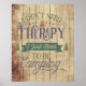 Brincadeira, estilo rústico, citação de "Eu não preciso de terapia, eu só preciso ir acampar" em madeiras em apuros