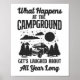 Este engraçado amante de acampamento dizendo que o móvel home rv design lê o que acontece no acampamento se ri por todo o ano. Foi criado com amor e você verá uma autocasa e uma campervan.