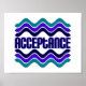 Um gráfico colorido de roxo, azul e lacre apresenta a palavra ACEPTANCE no centro. "Aceitação" é a pedra angular de uma recuperação bem-sucedida em qualquer programa de 12 etapas, como Alcoholics Anonymous, Narcotics Anonymous, Al Anon.