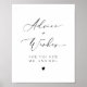 Este aviso e sinal de desejo apresenta uma fonte elegante e um layout moderno minimalista. Use esta modelo para editar a cor da fonte e a cor do plano de fundo para corresponder às necessidades do evento. A combinação simples de cores preto e branco faz dela a adição perfeita a qualquer evento. Use este poster para sua recepção de casamento, chá de panela, chá de casais, etc.