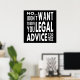 Não, não quero te dar um conselho legal para uma citação de humor de advogado engraçada e grátis para um advogado profissional com dívida de empréstimo estudantil ou apenas para trazer um sorriso para o rosto de alguém! > Ideia de exame de associação de passagem do bar. Uso para estudantes, formandos de direito, formandos ou graduação de classe. > Personalize-o! Adicione nome personalizado, foto ou texto.