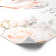 Este sinal de mesa é enfeitado com delicados padrões florais rosados, estabelecendo um tom romântico e sofisticado para o evento.