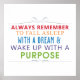 Afirmação colorida e positiva: sempre lembre-se de dormir com um sonho e Acordar com um propósito