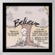 O garotinho se inclina contra uma árvore com as palavras BELIEVE escrito nas folhas. Não faltam dúvidas... É a abundância de crenças que muitas vezes é ignorada. Acredite no incrível que é você! ©Little Boy, Big Dreams, LLC e David A. Carrizales e trabalho de arte © Christie Black