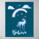 Póster Acredite em um Unicórnio sob um arco-íris