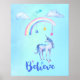 Póster Acredite em um Unicórnio sob um arco-íris